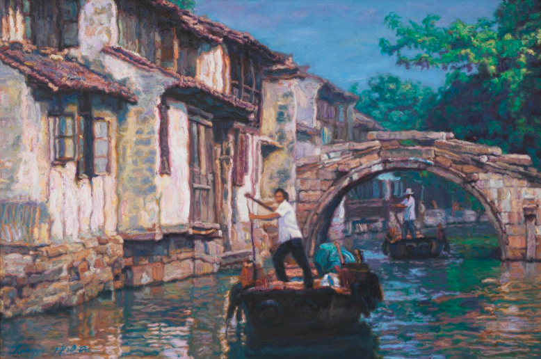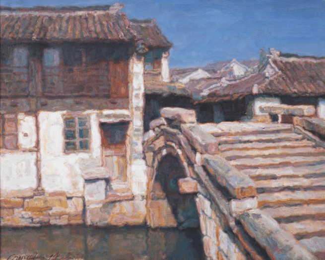 陈逸飞〔1946—2005年〕,出生于浙江宁波镇海 ,美籍华裔现代画家、导演、视觉艺术家,浪漫写实主义画家。其主要油画作品有《黄河颂》《占领总统府》《踱步》等;雕塑作品《东方少女》等;导演作品有《人约黄昏》《逃往上海》《上海方舟》《理发师》等。